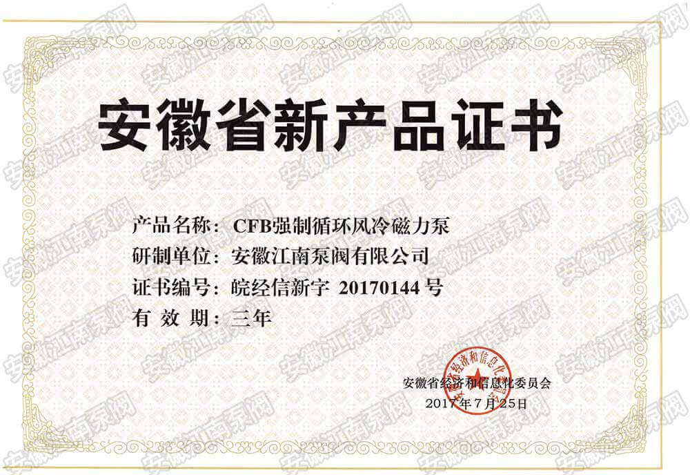 安徽江南泵閥有限公司榮獲CFB強制循環(huán)風冷磁力泵新產品證書,主營:氟塑料泵,不銹鋼泵,耐腐蝕化工泵,品質卓越,行業(yè)領跑企業(yè),科研生產型企業(yè)20年鑄就行業(yè)輝煌!...