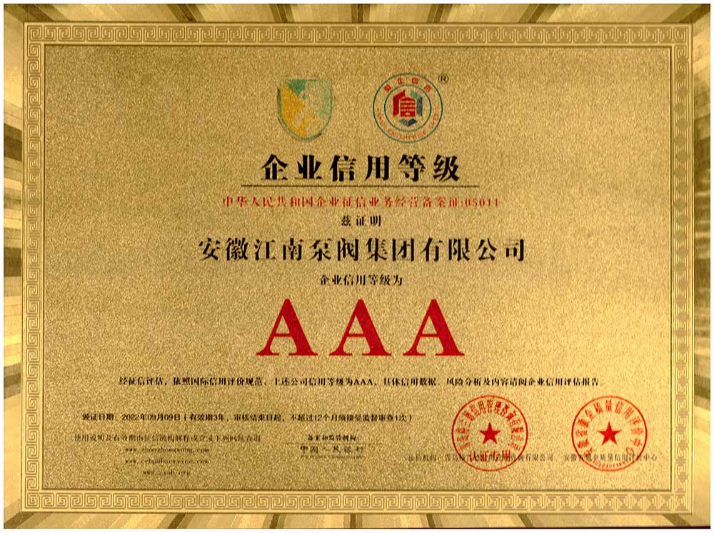 安徽江南泵閥集團有限公司榮獲3A企業信用等級證書,主營:氟塑料泵,不銹鋼泵,耐腐蝕化工泵,品質卓越,行業領跑企業,科研生產型企業20年鑄就行業輝煌!...